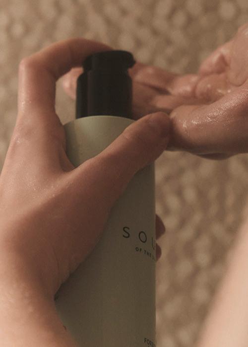 しっかりと洗い流します。さらにうるおいを与えるため、仕上げにソウルトの“ベルベット・ヘイズ(VelvetHaze)”ボディローションを塗りましょう。